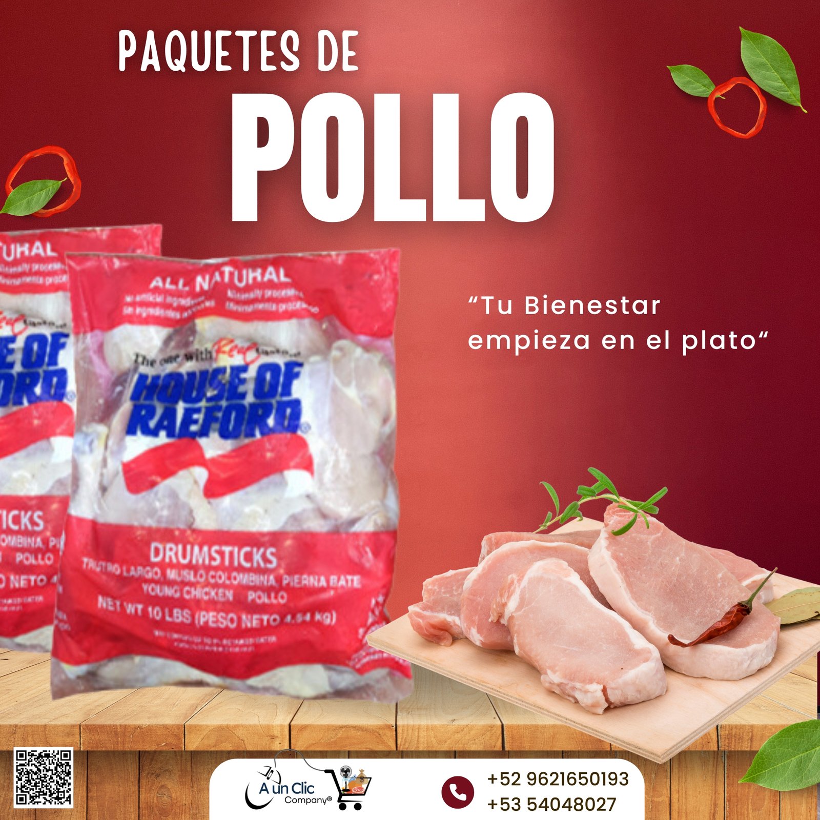 “Paquetes de pollo frescos y de la mejor calidad, ideales para tus comidas diarias. 🛒🍴 Rinde más en tu cocina con un producto práctico, nutritivo y al mejor precio.”